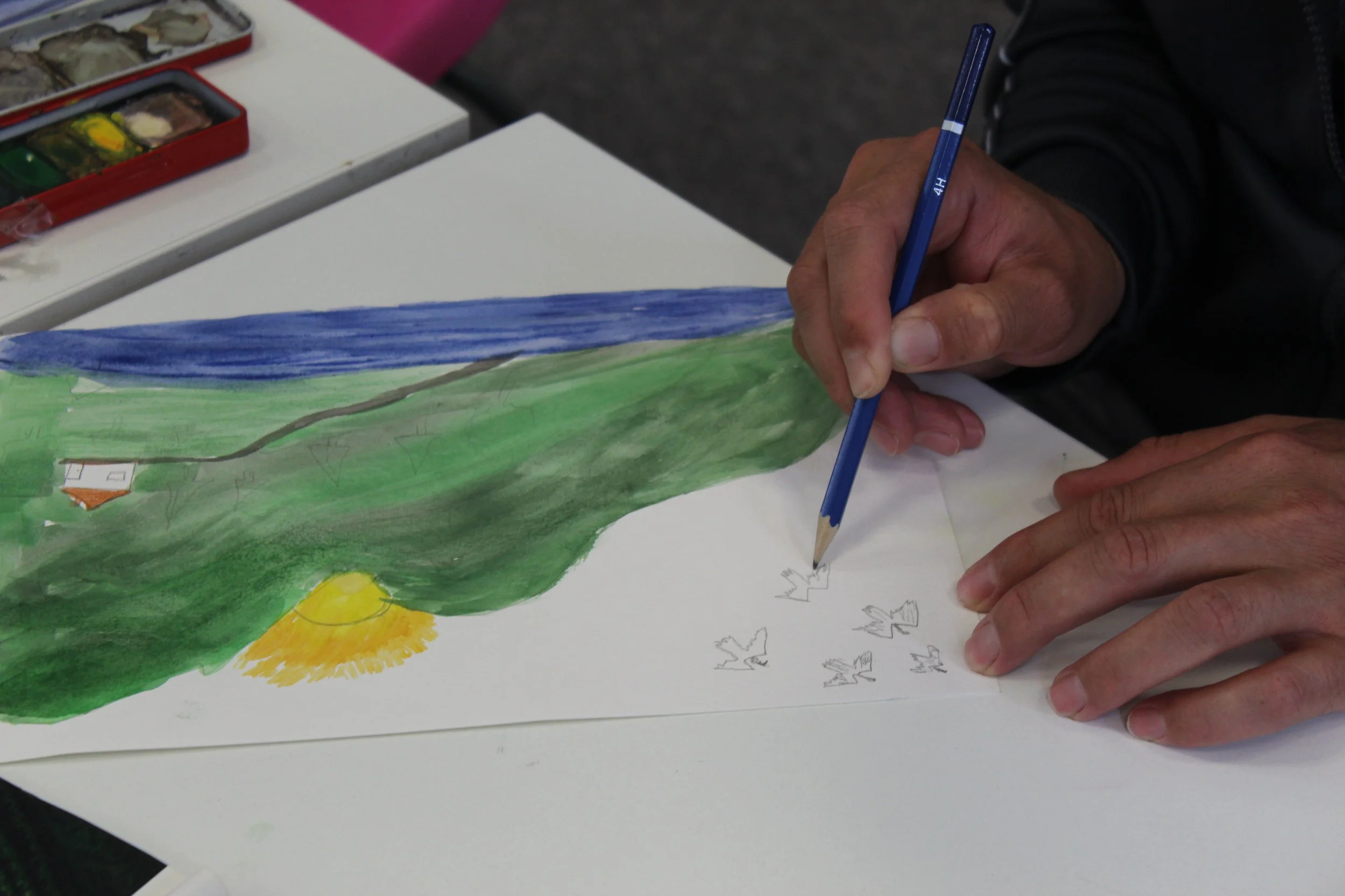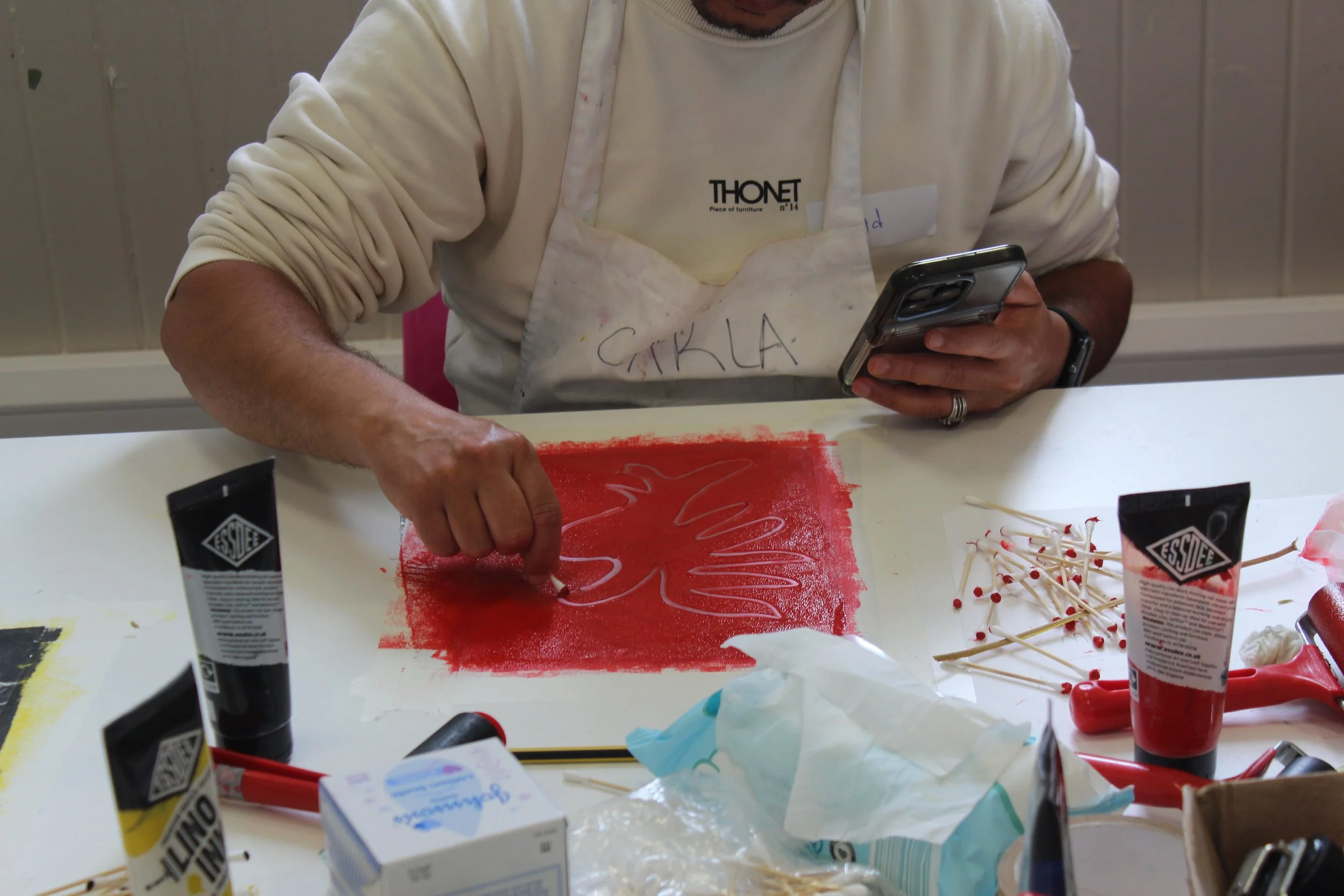 Together they deliver projects that prioritise wellbeing, and the power of art to bring people together. Art can offer an alternative way to connect -beyond language - through image, mark, and shared making.